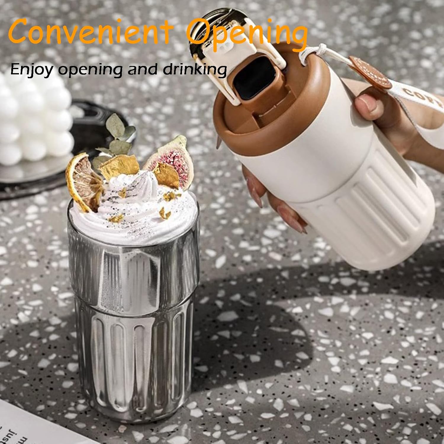 - 【Super Insulation】This insulated coffee cup uses double-layer insulation material, which can provide you with a heat preservation effect of up to 6h~12h, which can keep it hot and cold, allowing you to enjoy every sip. Enjoy the best taste.