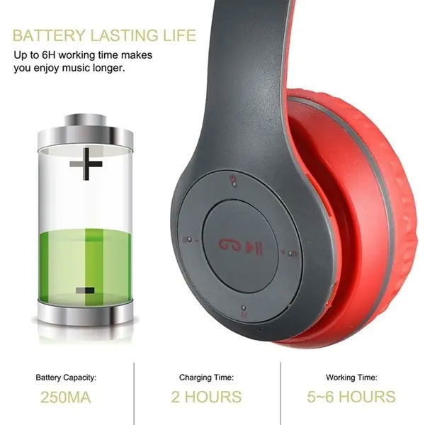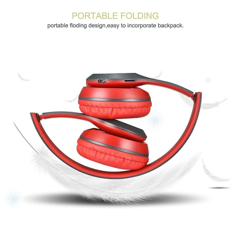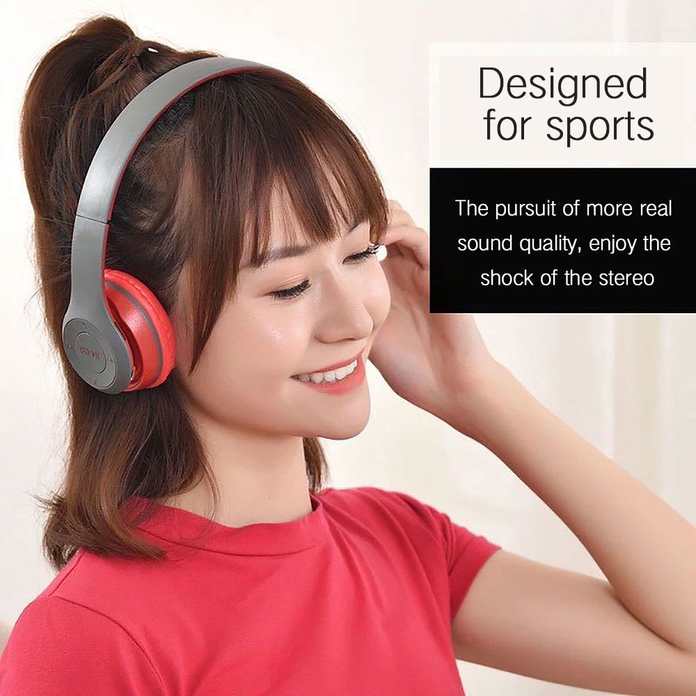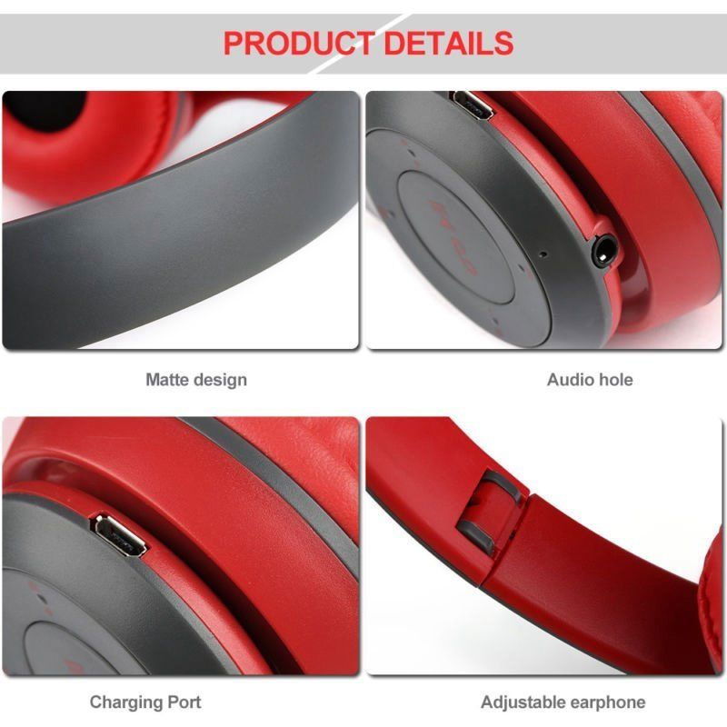 Best Sound Quality Latest P47 with Mic & SD Card Support 6 Hour Battery Backup Bluetooth Headset (On The Ear) (Red)