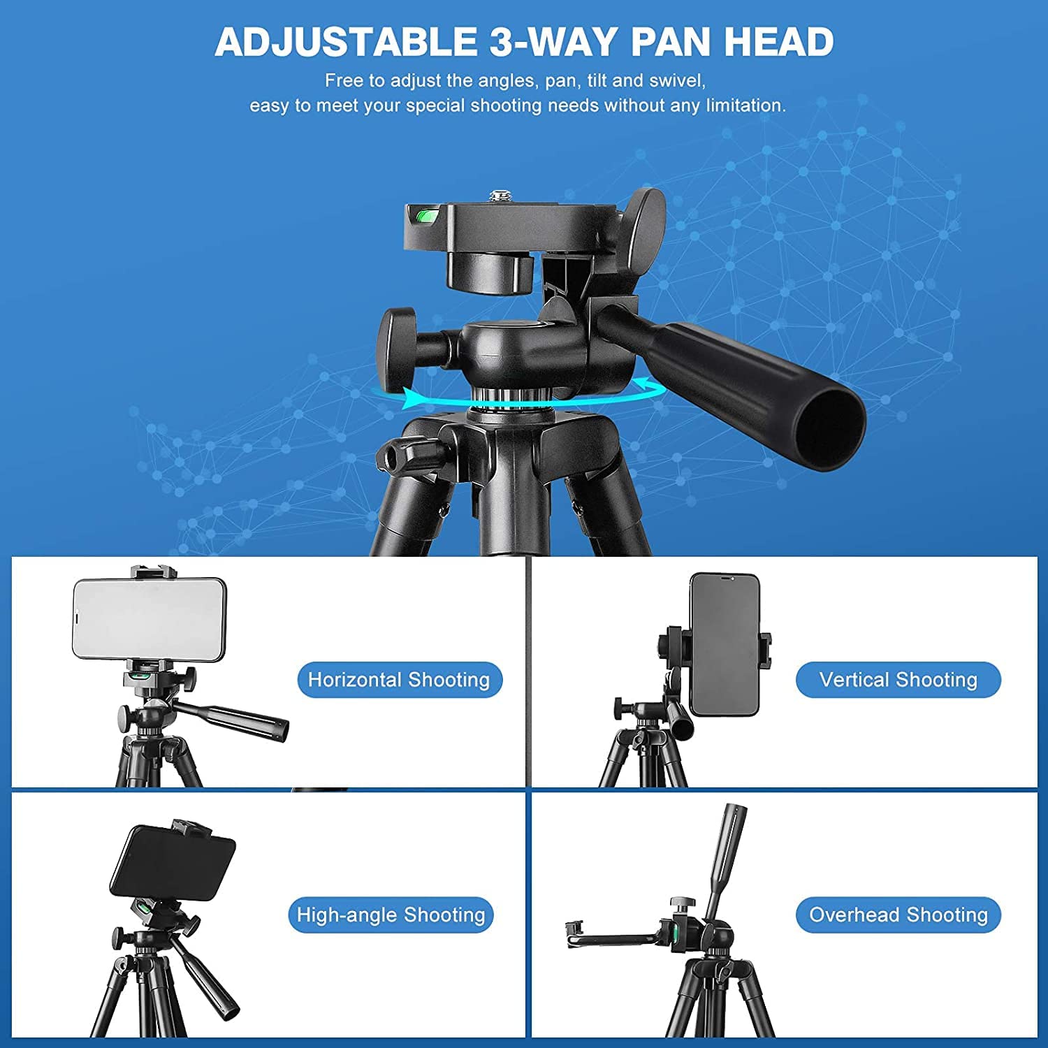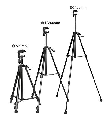 3388 Professional DSLR Camera Stand,. The panhead handle easily controls the camera. Remote bluetooth connection with phone .... The product can be adjusted to a maximum height of 146cm, giving you more options when shooting. With 3 feet made of lightweight aluminum alloy and sturdy, large diameter, you can place on even rugged, uneven terrain. The easy-to-use adjustable height adjustable handlebar lets you quickly raise or lower the tripod height. Product features: Products include tripod and 3 head damping Maximum height: 146cm Minimum height: 46cm Weight: 1.3kg Capacity Weight: 3kg Tripod foot width: 2cm Material: aluminum alloy, plastic There are adjustable panhead clamps Rotate 360 ??degrees Rubber feet, anti-slip 1/4 screw male, compatible with all types of camcorders Easy to fold, move Enclosed bag lightweight, convenient